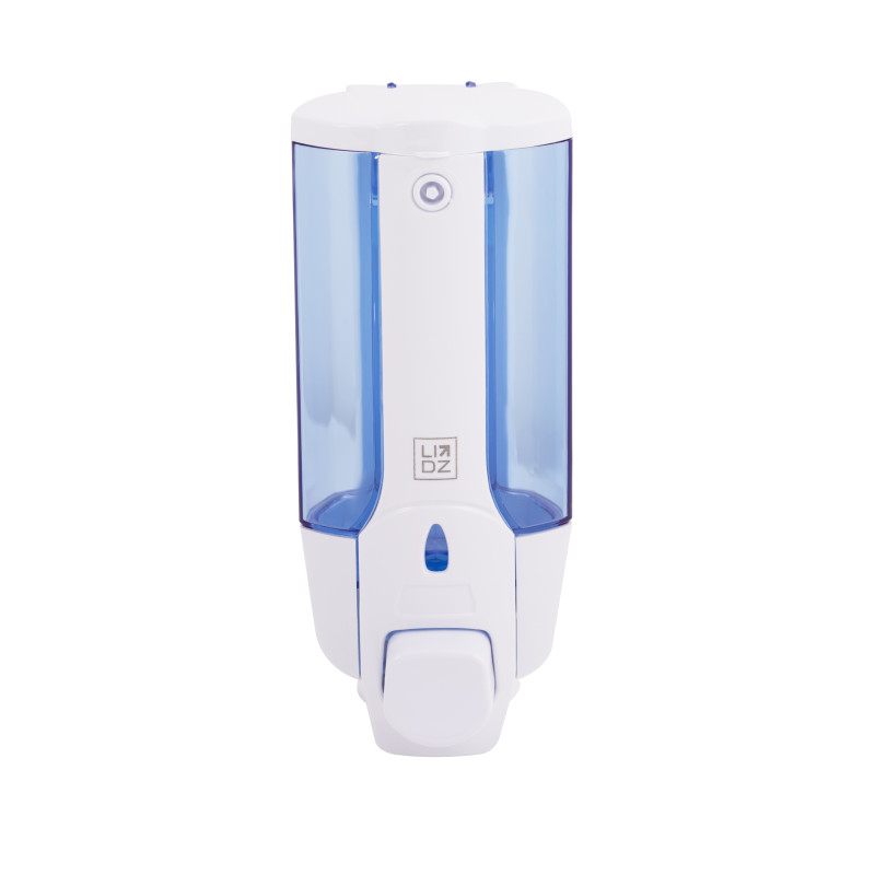 Диспенсер для рідкого мила Lidz (PLA) -120.01.01 з одинарним пластиковим резервуаром розрахований на 380 мл. Подача мила відбувається при натисканні на кнопку. Диспенсер кріпиться на стіну в будь-якому зручному місці шурупами, які входять в комплект.