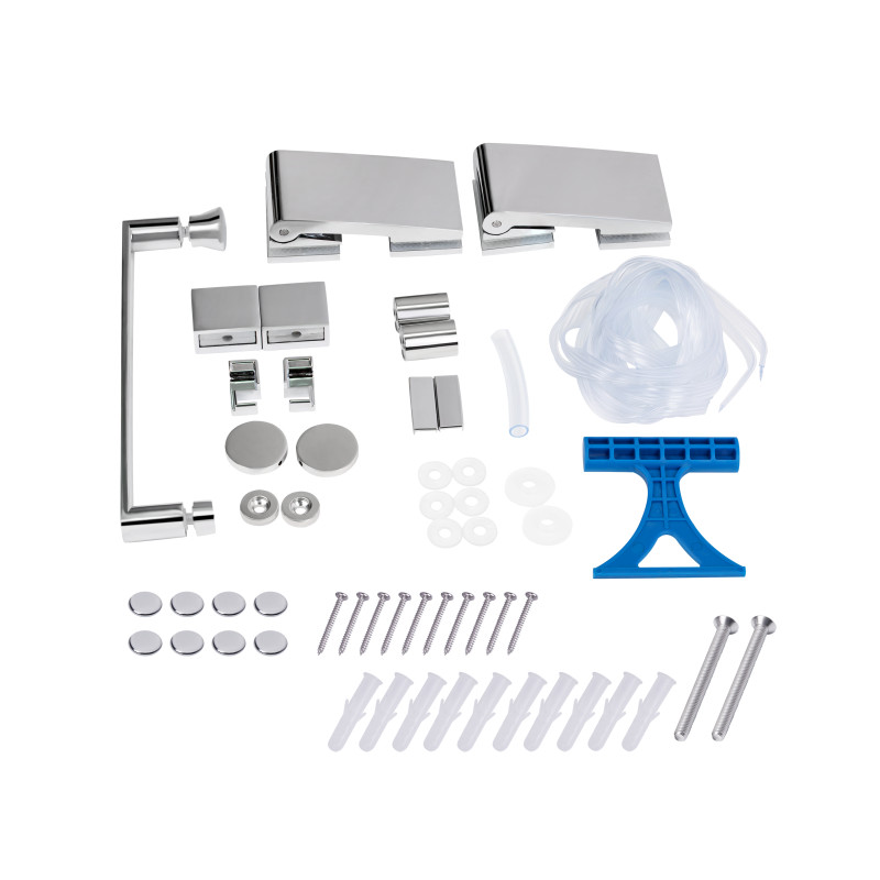 Комплектация | Верхний профиль, нижний борт, боковые профили, расширительные профили, петли, держатели стекла, комплект крепежей, заглушки, ручка, набор уплотнителей, глухие стекла, стеклянная дверь. |