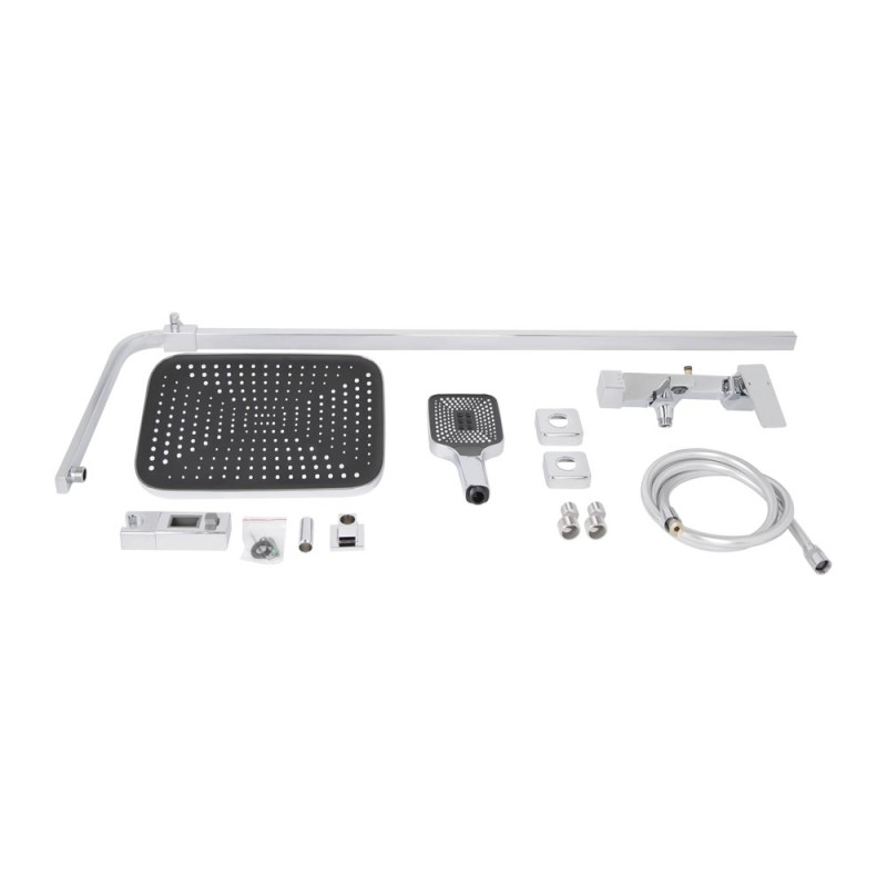 Комплектация | Смеситель, кронштейн для верхнего душа, лейка для верхнего душа, кронштейн для ручного душа, лейка для ручного душа, душевой шланг, шланговое подсоединение, крепежи. |