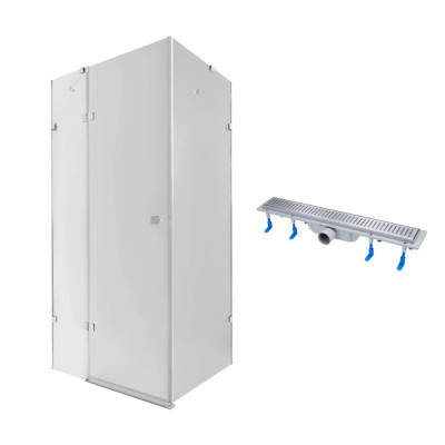 Набор Qtap душевая кабина Capricorn CRM1018RC6 100х80, стекло Clear 6 мм + трап линейный Dry FB304-600 с сухим затвором и нержавеющей решеткой 600х73 мм