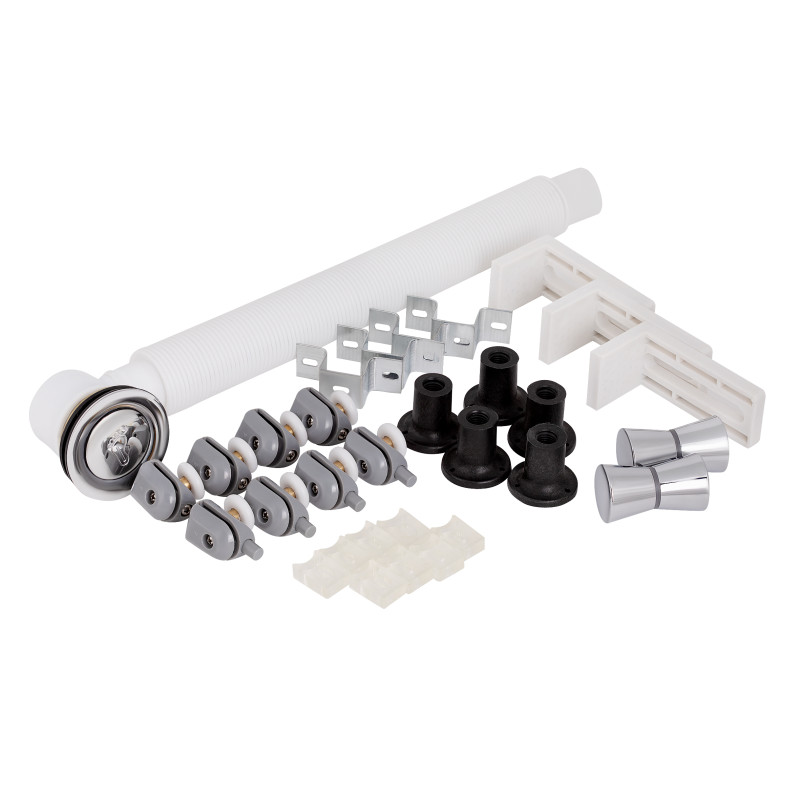 - Комплектация – Поддон, сифон, двери, ручки, двойные ролики, профиль, крепежи, задняя стенка, глухое стекло, стеклянные двери, панель, смеситель, лейка для ручного душа, лейка для верхнего душа, душевой шланг, кронштейн, верхняя крышка, вытяжка, стеклянная полка, переходник 32/50 мм;