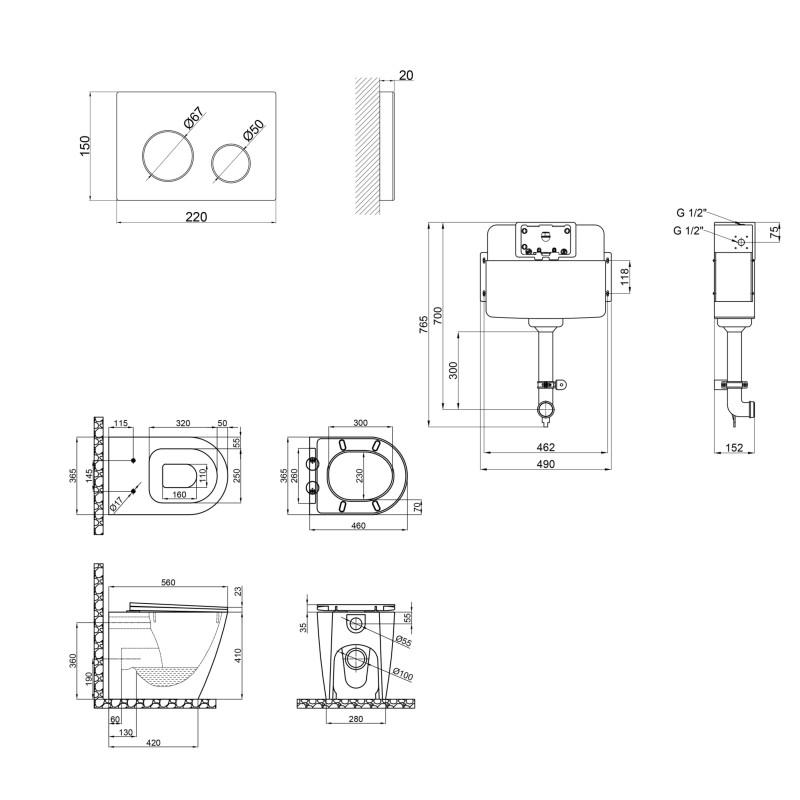 Вес нетто, кг | 8,25 - инсталляционный бачок; 0,8 – панель смыва; 37 – унитаз |
