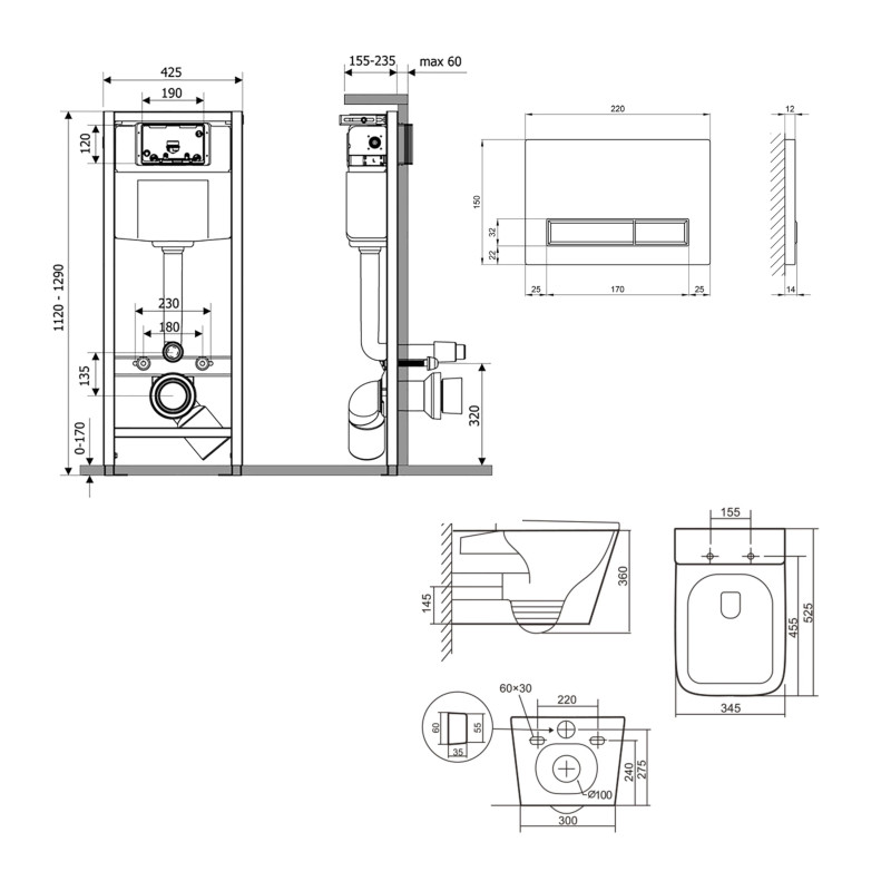 Тип изделия | Набор инсталляция + унитаз с сиденьем |
