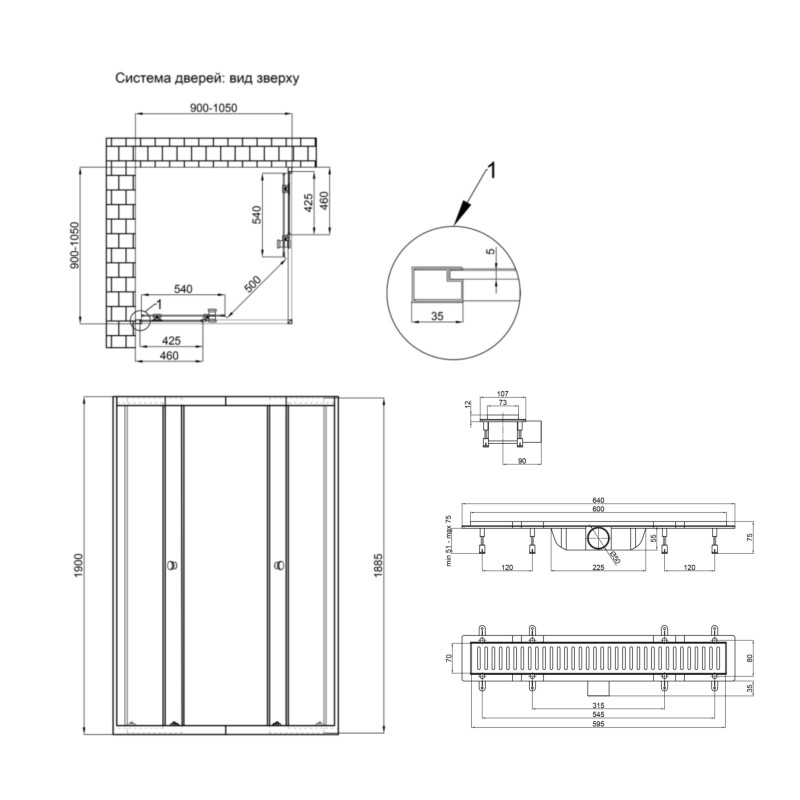 Материал | стекло, аллюминий - душевая кабина; нержавеющая сталь, пластик - трап |