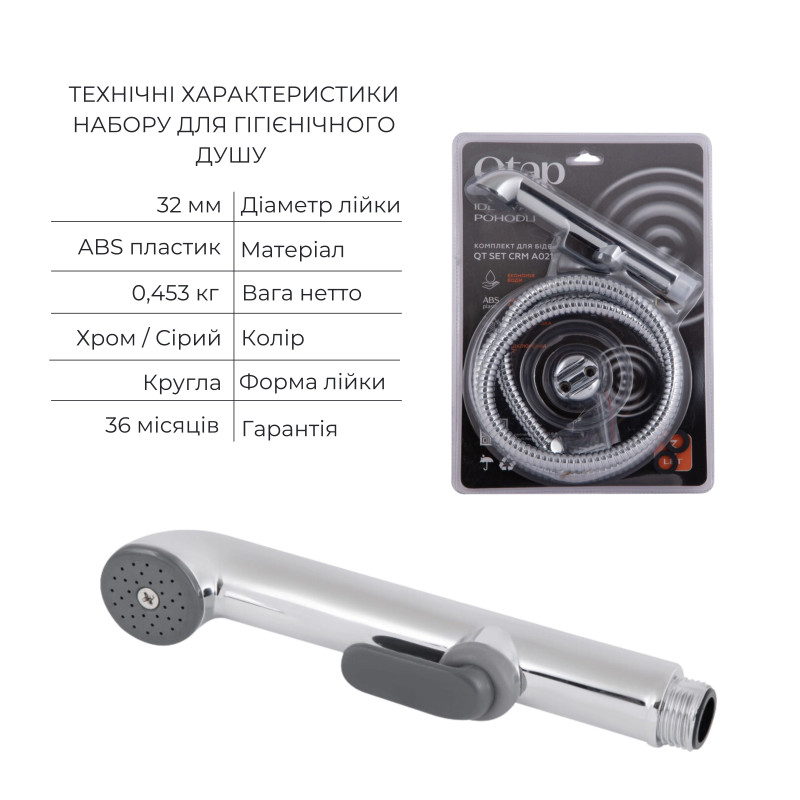 Комплект для душа Qtap Chrome состоит из смесителя для душа QTNAM6025102NC, стильного и функционального гигиенического набора QTSETCRMA021, а также удобного подключения QTCRMBH130, все элементы выполнены в современном хромированном дизайне, обеспечивая практичность, эстетичность и комфорт использования в любой ванной комнате.