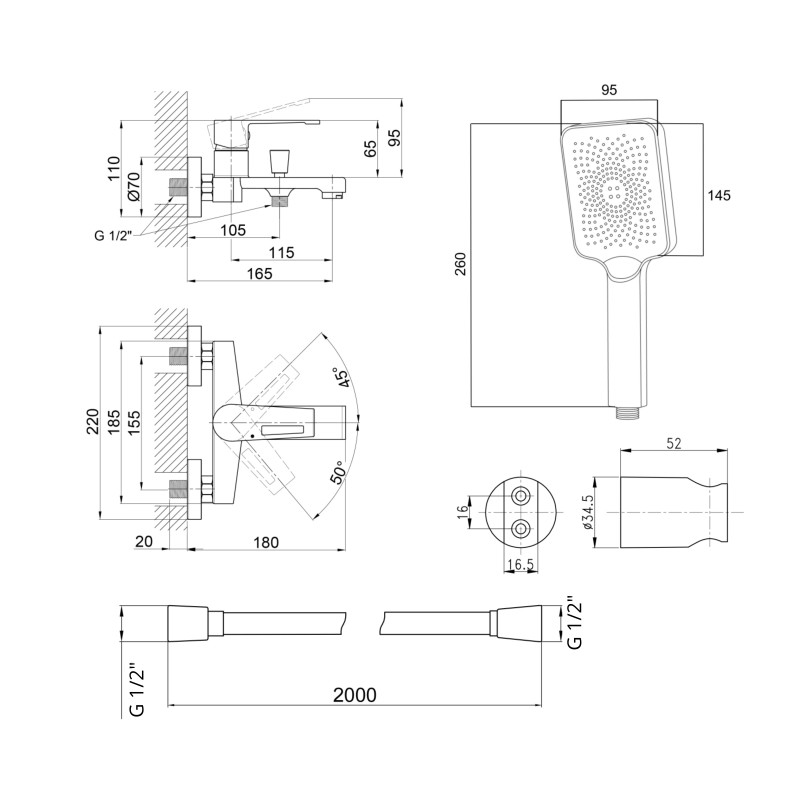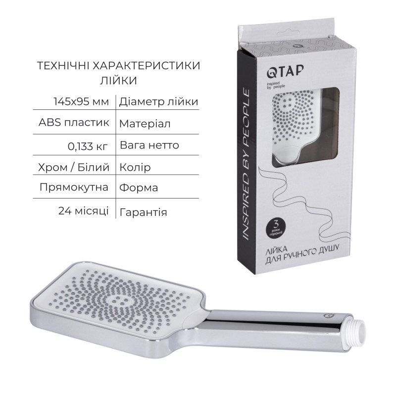 Комплектация | Смеситель (QTTER3061102C), лейка (QTRUC125CRM45777), шланг (QTHADPVC200C), держатель (QTCRMA030) |
