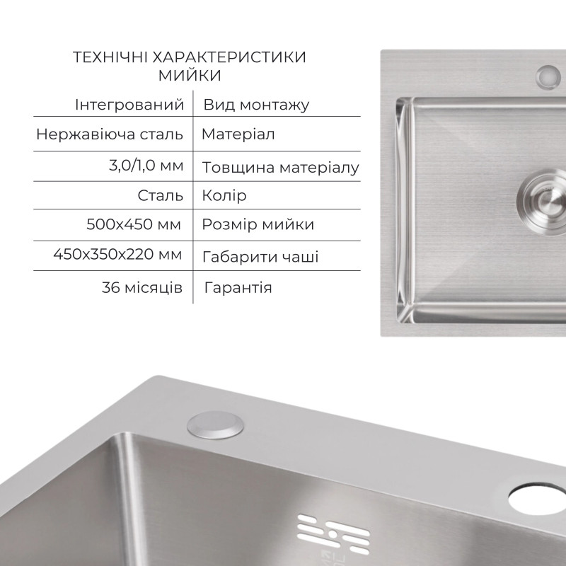 Комплект Lidz Handmade H5045 (Brushed) сочетает в себе компактную интегрированную мойку с элегантной шлифованной поверхностью Brushed, дозатор для моющего средства и корзину Lidz K01G. Этот комплект станет не только стильным акцентом на кухне, но и облегчит выполнение бытовых задач благодаря продуманным аксессуарам.