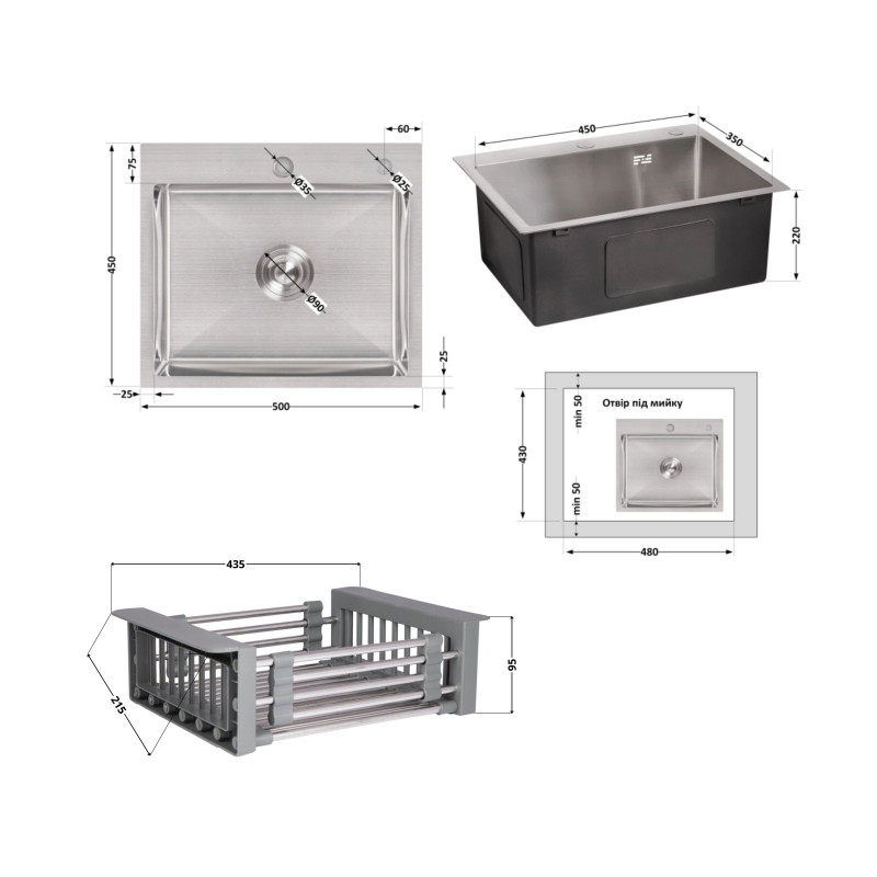 Комплектация | Мойка (LDH5045BRU35383), корзина (LIDZK01G) |