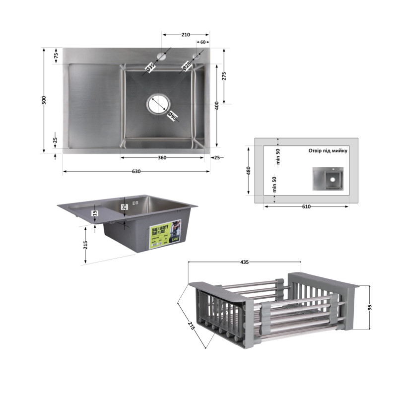 Комплектация | Мойка (LDH6350BRUL45588), корзина (LIDZK01G) |