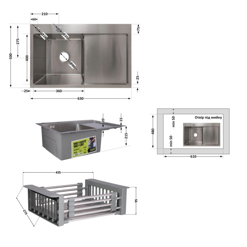 Комплектация | Мойка (LDH6350BRUR45587), корзина (LIDZK01G) |