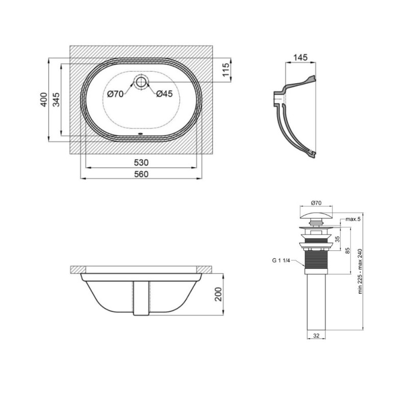 Материал | Керамика – раковина; латунь / керамика - донный клапан. |