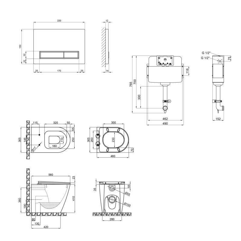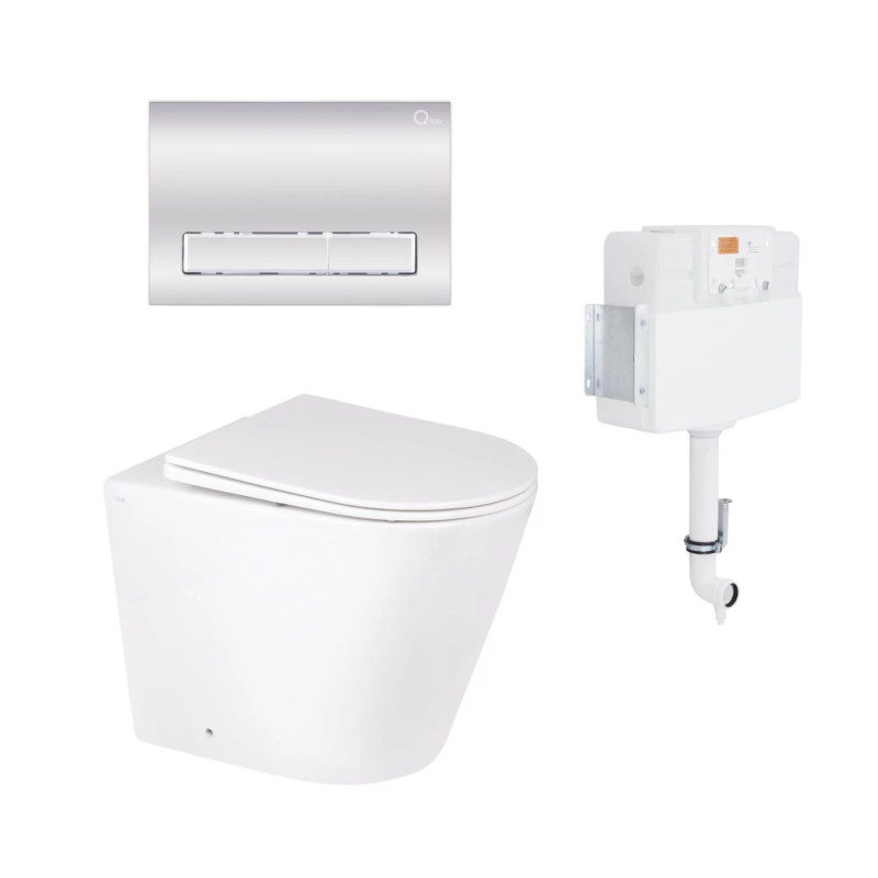 Комплект: Qtap Swan унитаз напольный Rimless QT16223178W + Nest комплект инсталляции 2в1 (линейная клавиша Chrome) QT0122490S4Q1 + QT0111M08381CRM