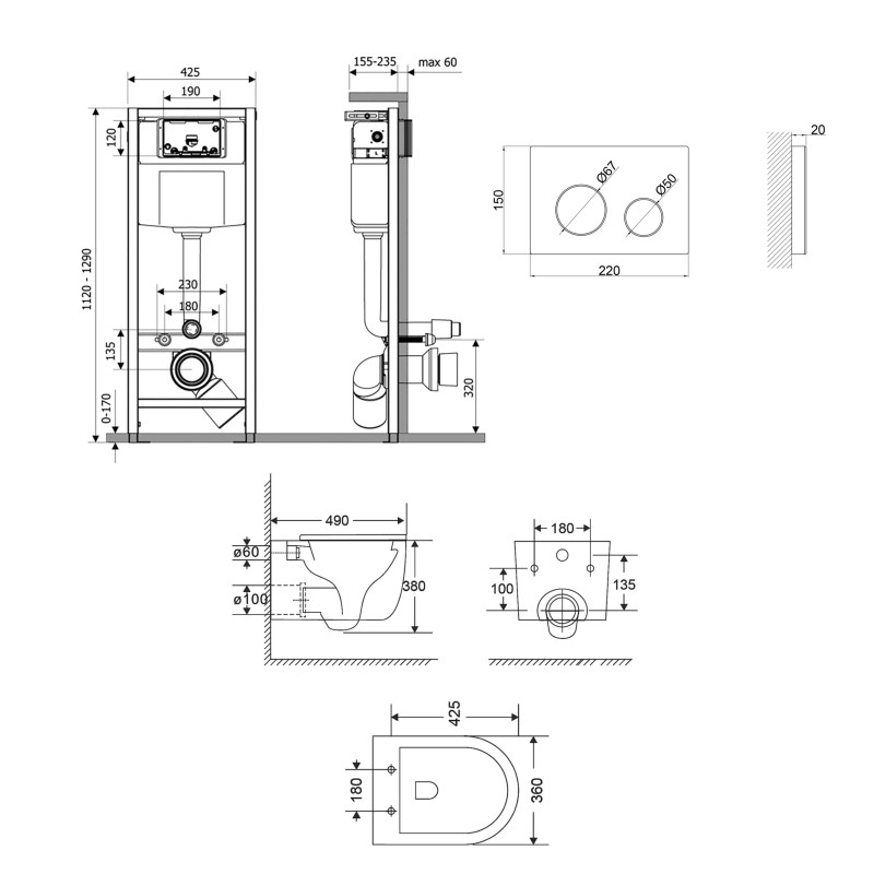 | Тип изделия | Набор инсталляция + унитаз с сиденьем |