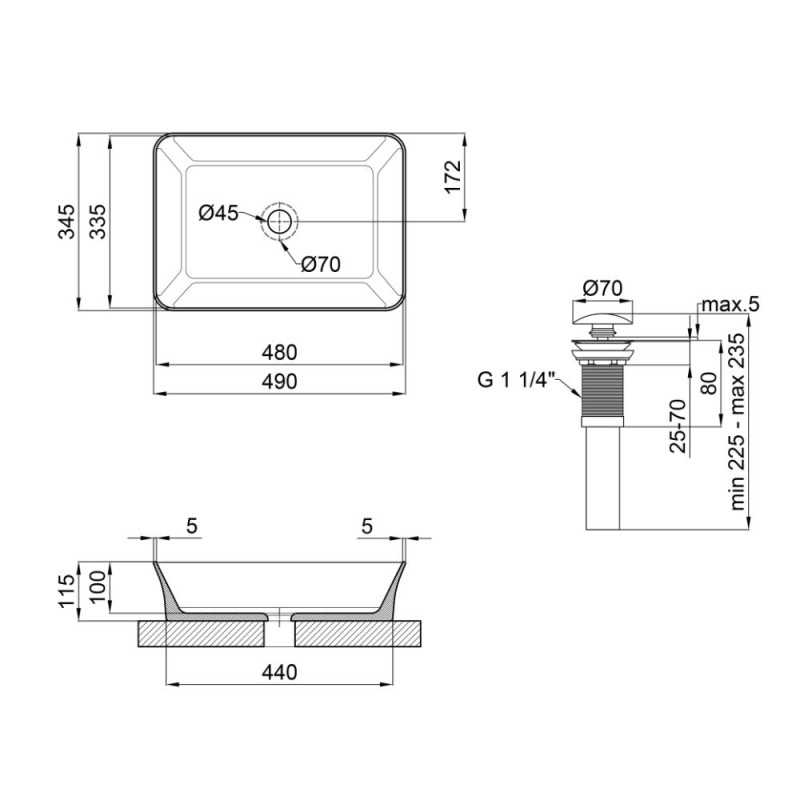 Материал | Керамика – раковина; латунь / керамика - донный клапан. |