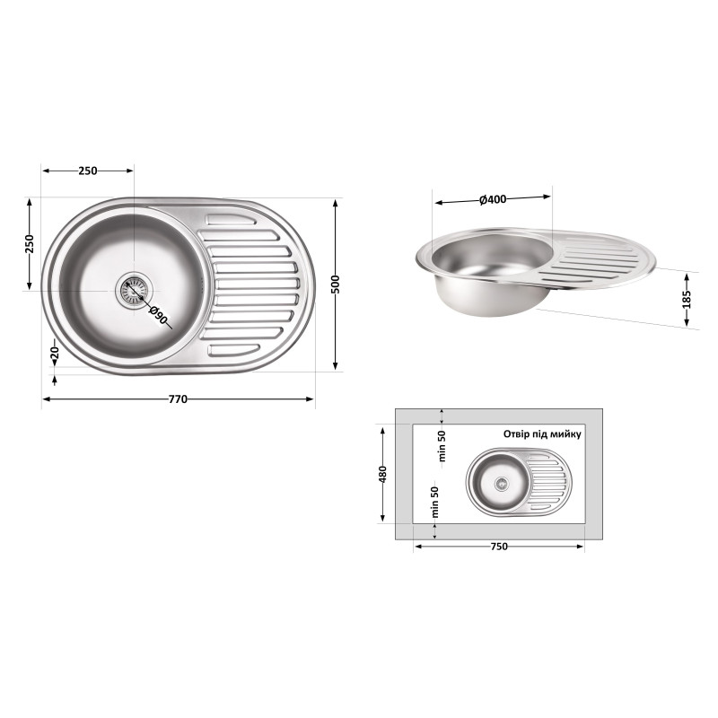 | Комплектация | Мийка, сифон, зливник/перелив, кошиковий вентиль, ущільнювальна стрічка. |