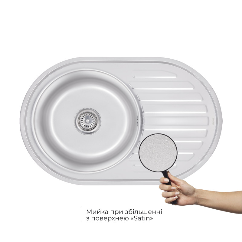 Кухонна мийка Lidz 7750 0,8 мм Satin виготовлена з високоякісної нержавіючої сталі харчової марки, тому виріб прослужить довгі роки. Також варто відзначити винятковий дизайн який прикрасить будь-яку кухню. Відмінна якість і дизайн мийки дозволять задовольнити найвищі вимоги і створити затишок у вашому будинку! Мийка виконана з робочою круглою чашею, ребристим крилом для сушіння посуду і розморожування продуктів. Монтується урізним способом в отвір у стільниці. Поверхня - матова, гладка.