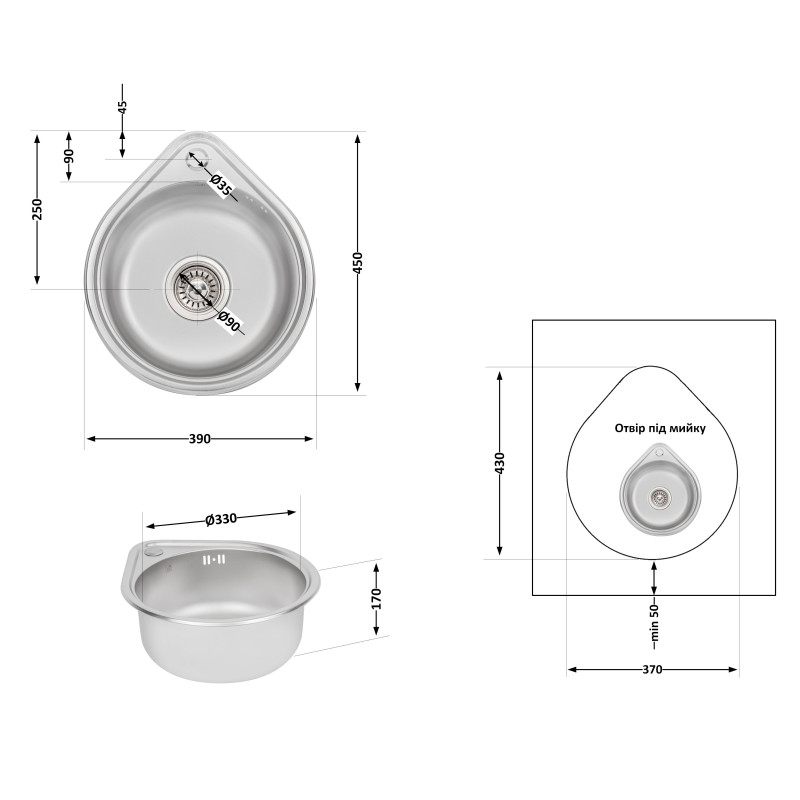| Диаметр слива, мм | 90 |
