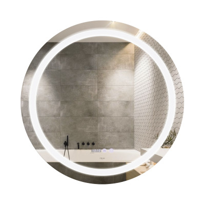 Зеркало Qtap Mideya R800 с LED-подсветкой Touch, с антизапотеванием, с часами, диммером, рег. яркости QT2078NCR8080W