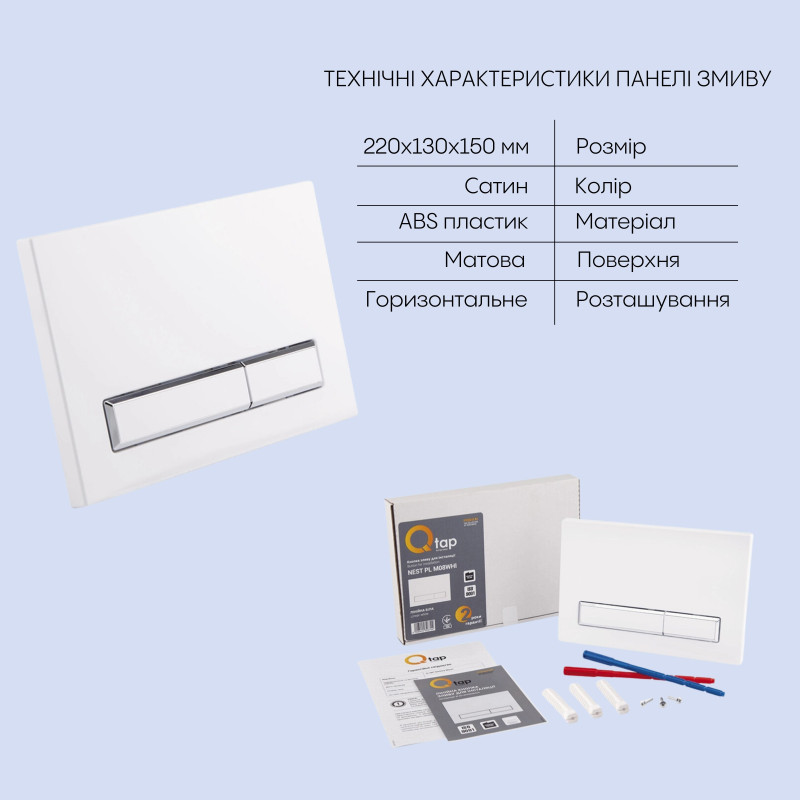 Состав набора | Инсталляция: Q-tap Nest QT0133M425. Панель смыва: Q-tap Nest QT0111M08V1384W. Унитаз с сиденьем: Q-tap Crow QT05335170W |