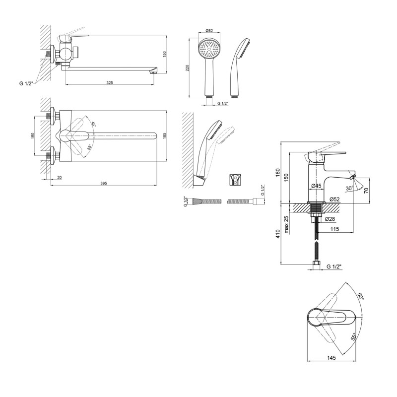 Набор смесителей для ванны Lidz Nicole (005+001F)