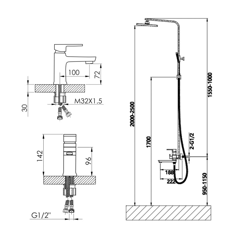 Состав набора | Смеситель для раковины LDWAW001CRM45387, душевая система LDWAW1030CRM45391 |