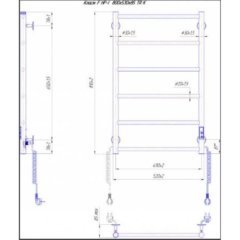 Характеристики электрического полотенцесушителя Mario Классик F HP-I 810х520 TR K
