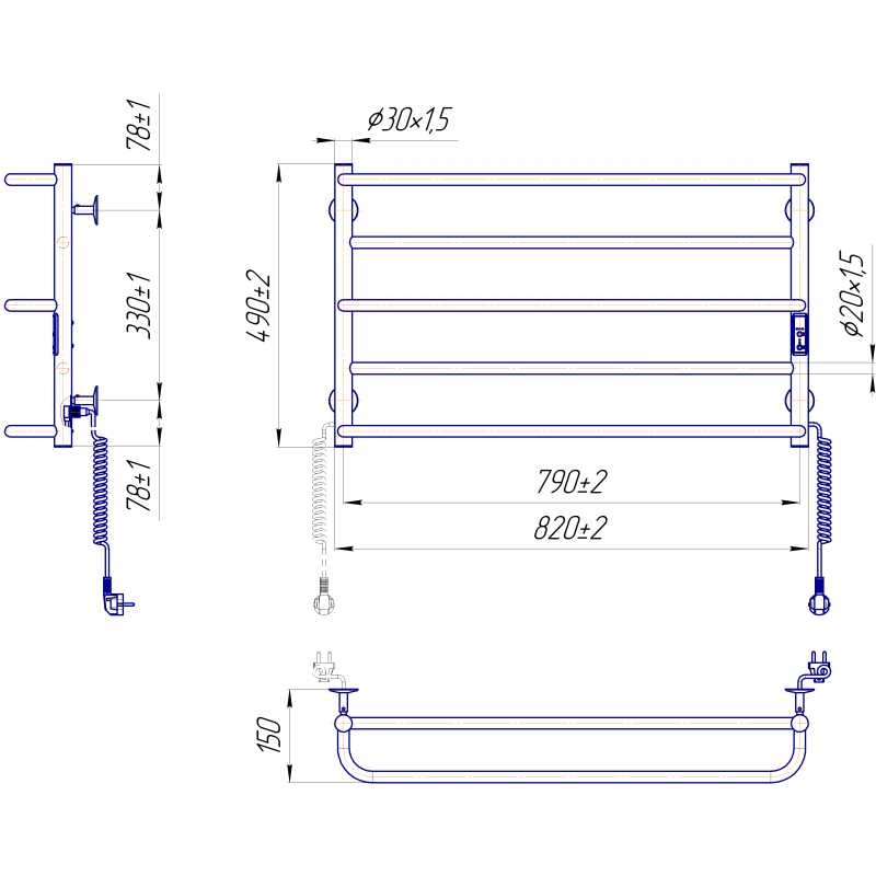 Характеристики электрического полотенцесушителя Mario Люкс Сити-I 490х820/150 TR K