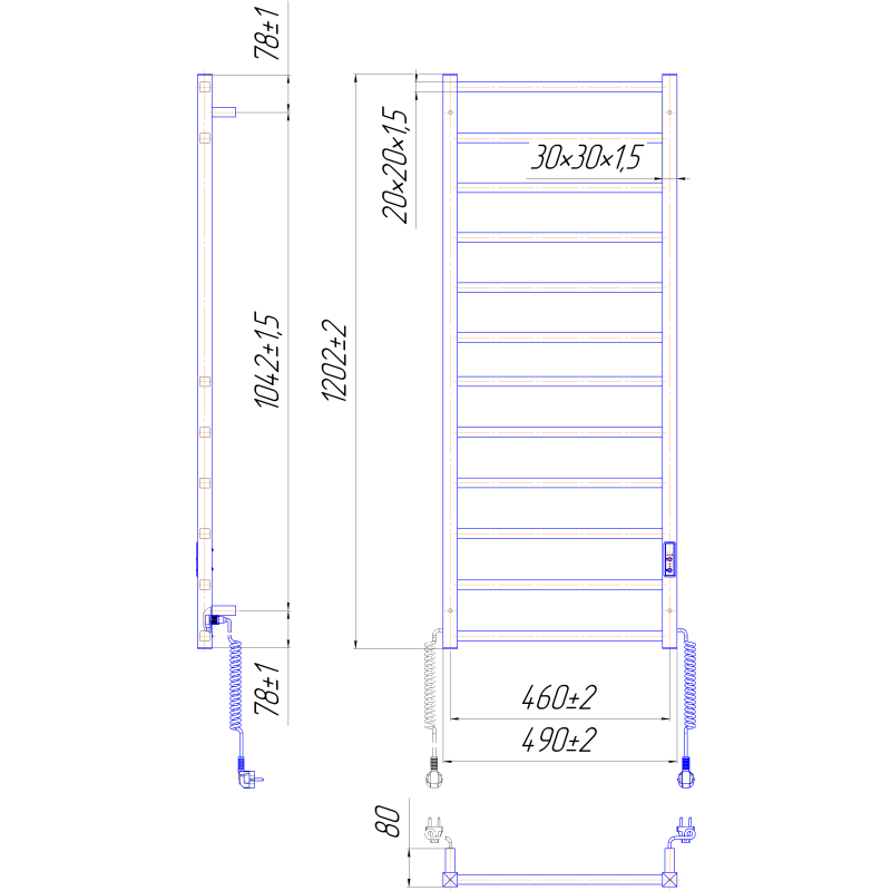 Электрический полотенцесушитель Mario Токио-I 1200х490/80 TR K имеет дизайн лесенки и изготовлен из нержавеющей стали AISI 304. Максимальная температура нагрева 55°C. Полотенцесушитель имеет номинальную мощность 170W и состоит из 12 ребер. Для экономии электроэнергии полотенцесушитель оснащен таймером, который позволяет запрограммировать его на 3 и 6 часов работы или переключить в режим постоянного нагрева. Также возможна регулировка температуры в трех режимах: 40°С, 45°С, 50°С (±5°С). Оборудовано полотенцесушитель коннектором, который позволяет подключать его к электросети как справа, так и слева. Полотенцесушитель с коннектором полностью совместим с комплектом скрытого монтажа.