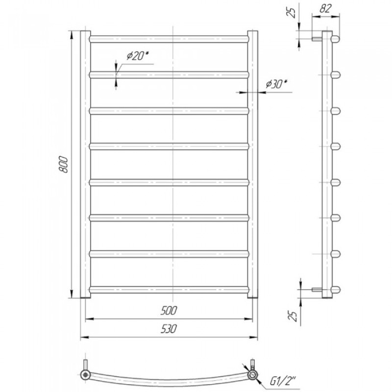 Технические характеристики водяного полотенцесушителя Mario Классик 800х530/500