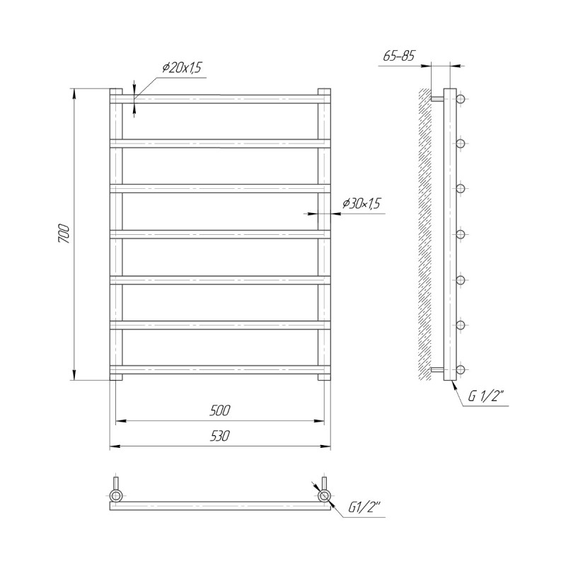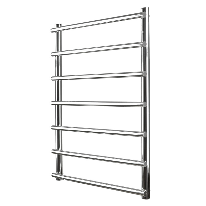 изготовлен из нержавеющей стали АІSI 304 в виде лесенки, которая защищена от образования ржавчины и других коррозионных процессов. Изделие имеет межосевое расстояние для подключения 500мм, диаметр подключения G 1/2''. Состоит полотенцесушитель из 7 ребер. Отлично подойдет для малогабаритных ванных комнат. Может быть оборудован электрическим ТЭНом.