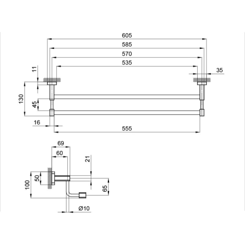Габариты изделия (ВхШхГ), мм | 100х605х130 |