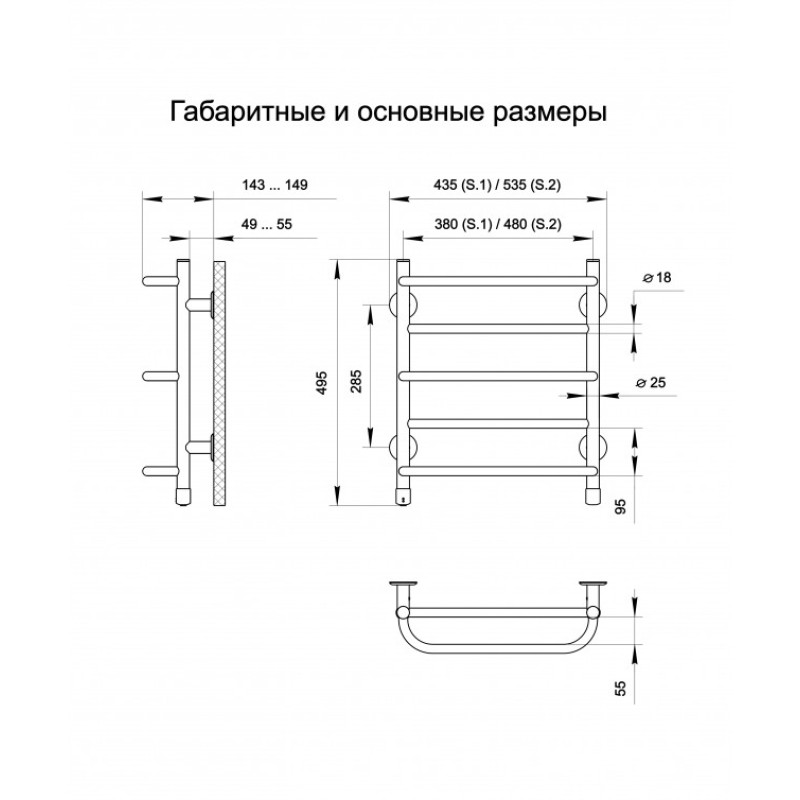 Характеристики электрического полотенцесушителя Тёплый мир Комфорт S.2 495х535х145