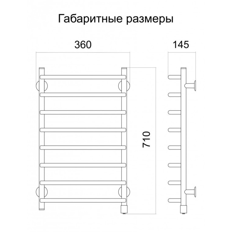 Электрический полотенцесушитель Тёплый мир Слим 710х365х145 - это трубчатая конструкция с нагревательным элементом внутри. Все модели изготовлены из стальной трубы с нанесением высококачественной порошковой краски, комплектуются витым сетевым шнуром (в выпрямленном состоянии 1,7 м) с евро-вилкой, как с левым, так и с правым подключением.