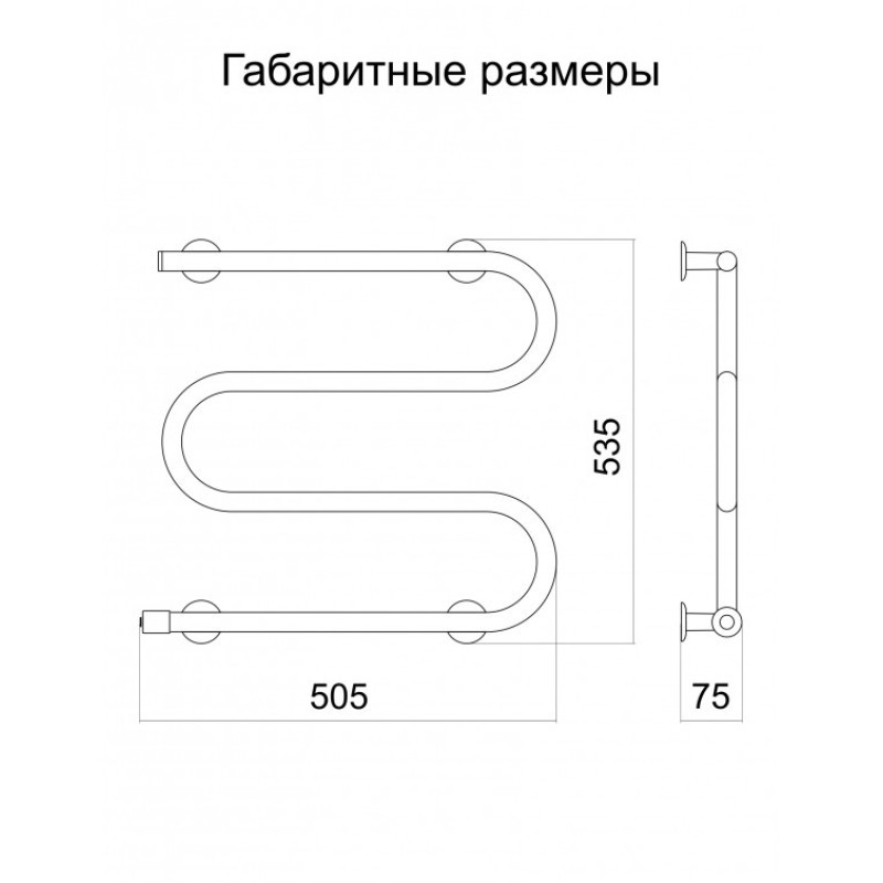 Характеристики электрического полотенцесушителя Тёплый мир Змейка 535х505х75