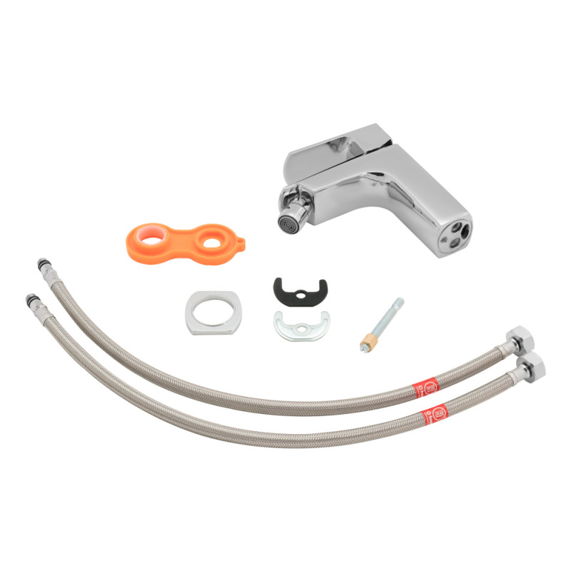 Комплектация | Смеситель, гибкая подводка, крепежи. |