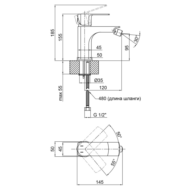 Дополнительные характеристики | Длина гибкой подводки 480 мм. |