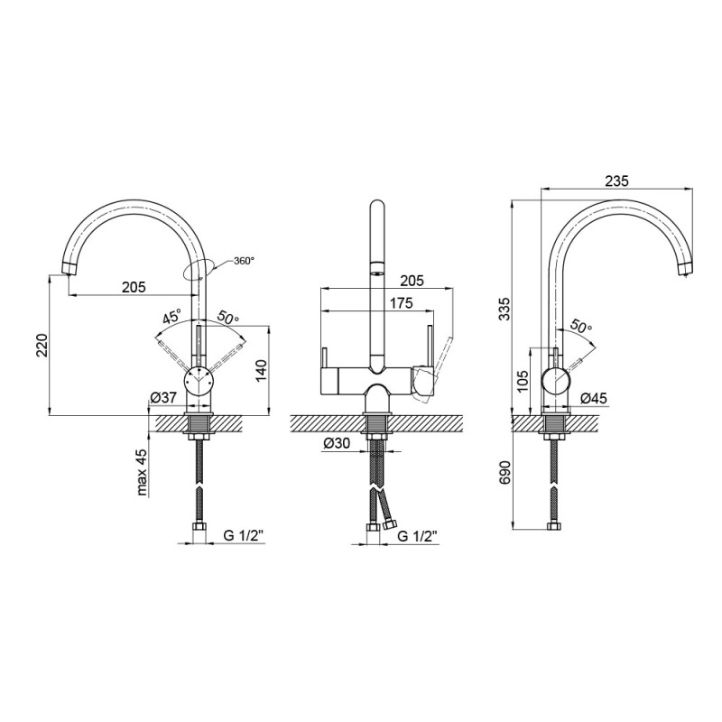Смеситель для кухни с фильтром Q-tap Kuchyne 92102UB