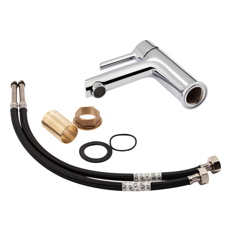 Комплектация | Смеситель, гибкая подводка, крепежи. |