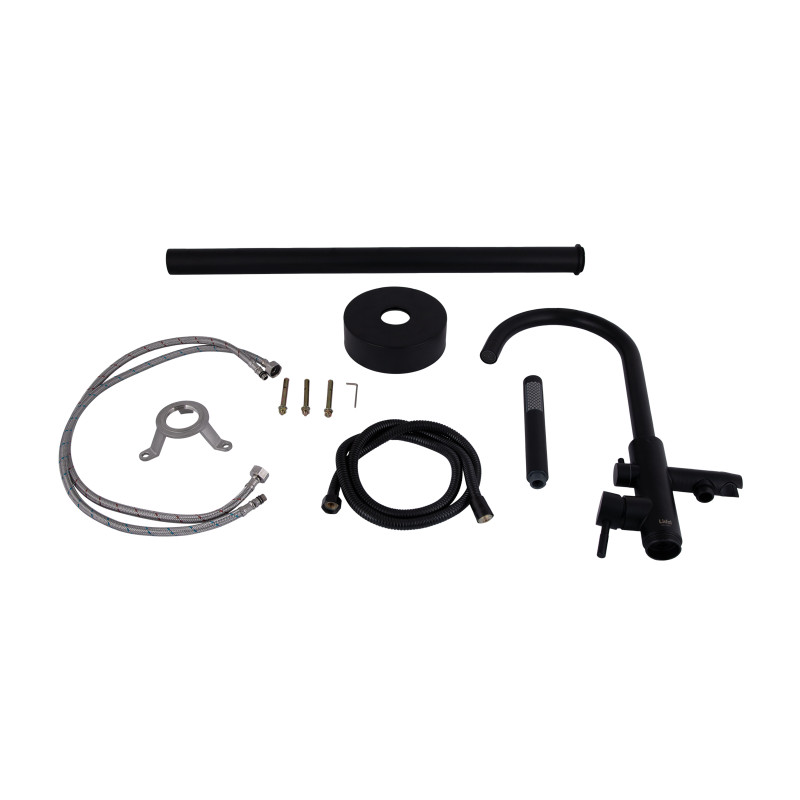 Смеситель для ванны напольный Lidz Aria 004 (с душевым гарнитуром) (k35) Black отличается современным черным матовым покрытием, которое придаёт интерьеру особую элегантность и утонченность. Этот смеситель оснащен удобным душевым гарнитуром и напольной конструкцией, которая идеально подходит для установки рядом со свободностоящими ваннами. Изготовлен из материалов высокого качества, что обеспечивает долговечность и надежность.