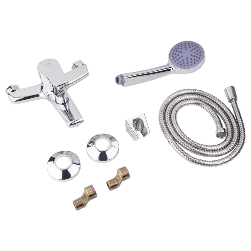 Комплектация | Смеситель, лейка для ручного душа, душевой шланг, держатель для ручного душа, крепежи. |