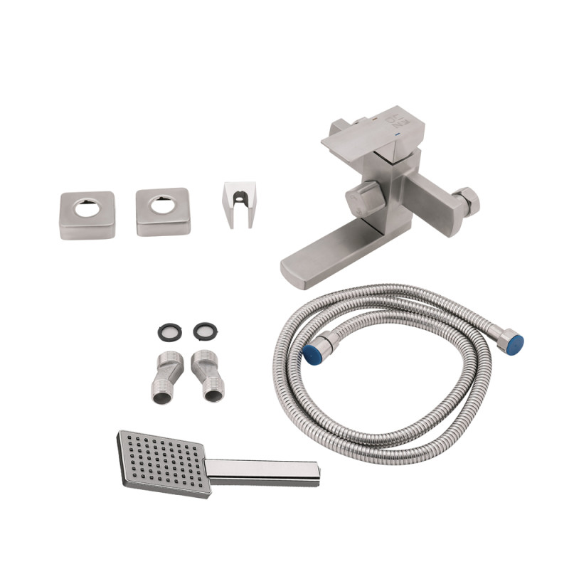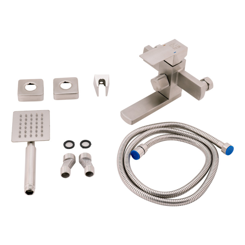 - Комплектация - смеситель, лейка для ручного душа 100х80мм (1 режим струи), душевой шланг 1500мм с функцией антискручивания, кронштейн для ручного душа, эксцентрики, декоративные чашечки, монтажный комплект;
