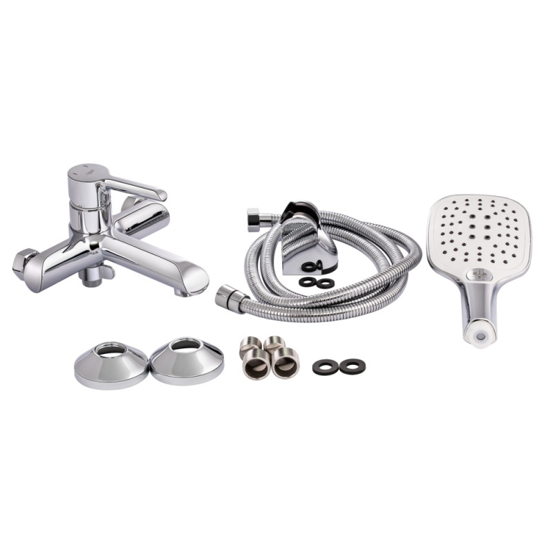 Комплектация | Смеситель, лейка для ручного душа, душевой шланг, кронштейн для ручного душа, крепежи. |