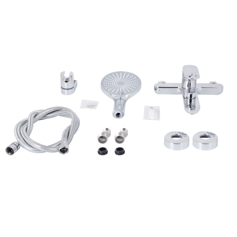 Комплектация | Смеситель, душевой шланг 150 см, душевая лейка, держатель лейки, комплект отражателей, комплект эксцентриков. |