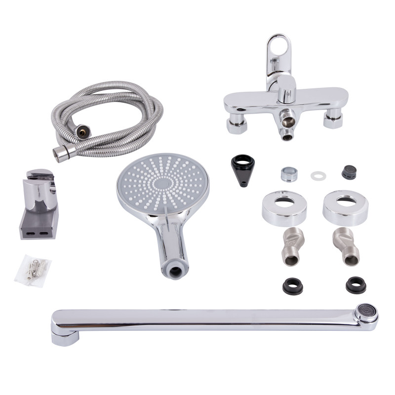 Комплектация | Смеситель, душевой шланг 150 см, душевая лейка, держатель лейки, комплект отражателей, комплект эксцентриков. |