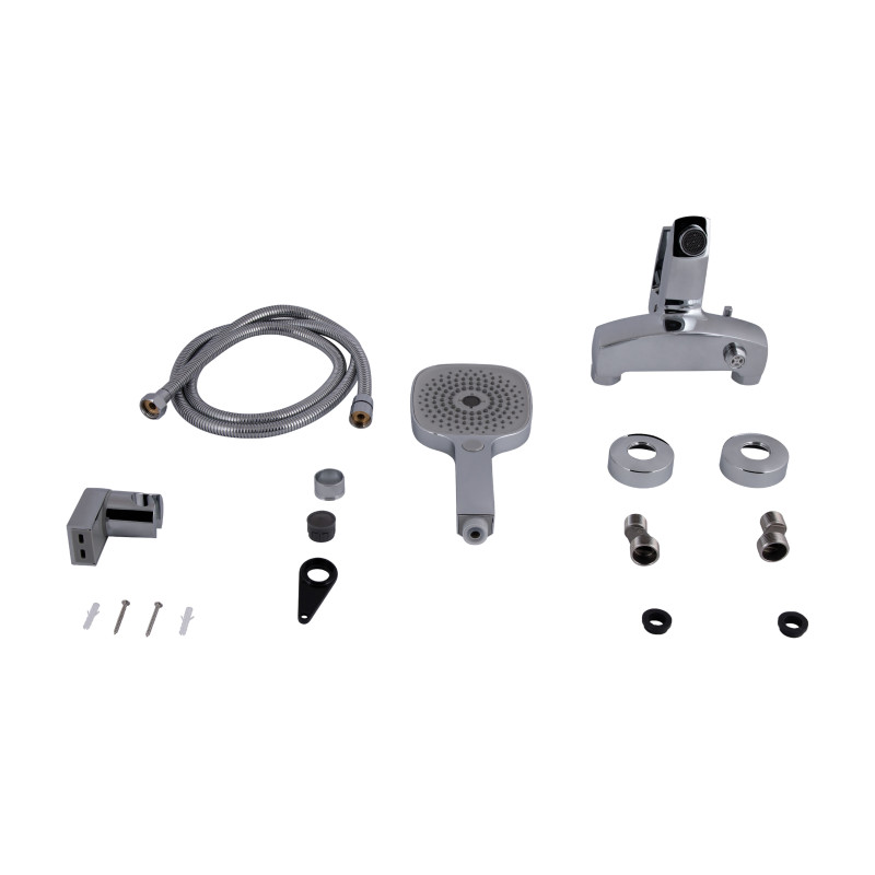 Комплектация | Смеситель, душевой шланг 150 см, душевая лейка, держатель лейки, комплект отражателей, комплект эксцентриков. |