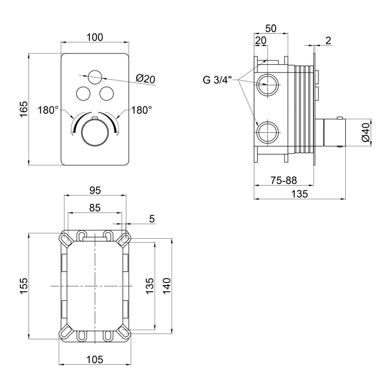 Смеситель термостатический скрытого монтажа для душа Qtap Votice 6443T105NKB на три потребителя