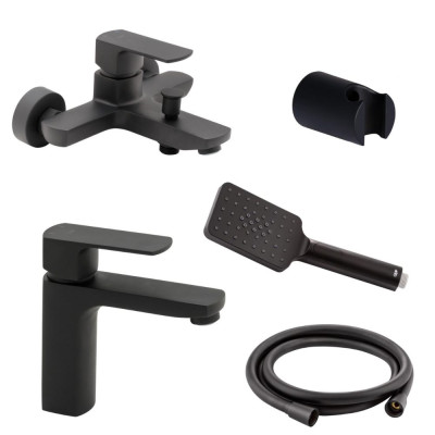 Набор смесителей Qtap 5 в 1 Lipno для ванны с душевым гарнитуром (QTLIPNO1023101CB + QTNH3023101DCB) чёрный