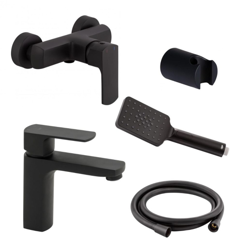 Набор смесителей Qtap 5 в 1 Lipno для душа с душевым гарнитуром (QTLIPNO1023101CB + QTLIPNO4023101CB) чёрный
