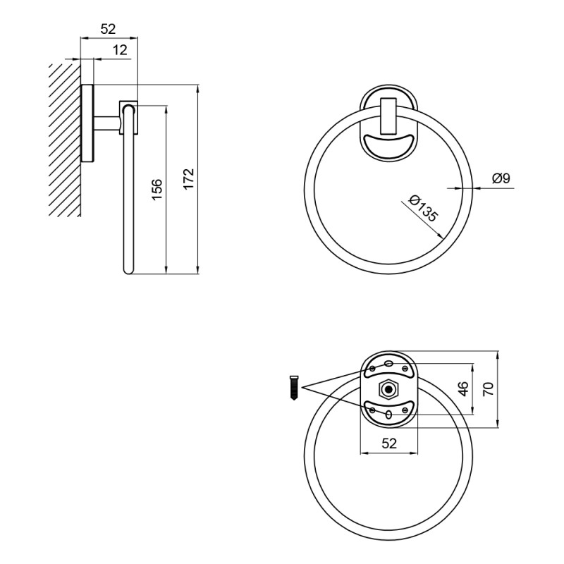 Комплектация | Тримач рушників, кріпильні деталі (дюбель-цвях - 2 шт.). |