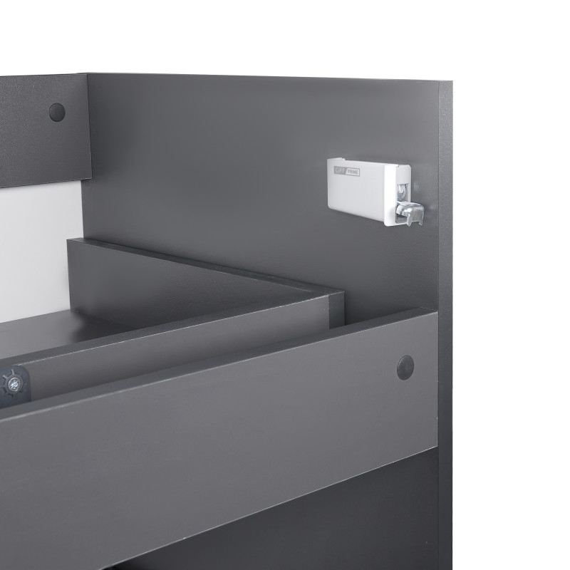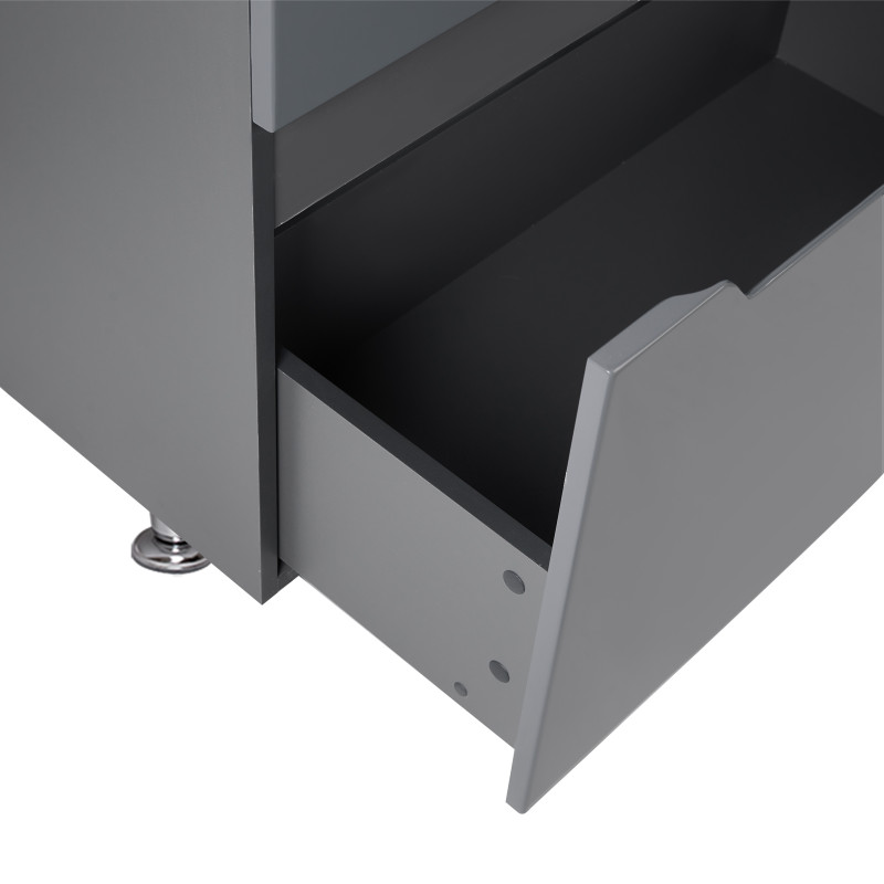 Підлогова тумба Qtap Scorpio 810х825х500 Graphite QT1473TNВ802NG виконана в лаконічному стилі, який доповнить дизайн будь-якої ванної кімнати. Корпус тумби сірого кольору виготовлений з ЛДСП, фасадна частина - з МДФ з глянцевим покриттям. Оснащена двома висувними ящиками з механізмом доводчика. У комплекті чотири стійкі металеві ніжки.